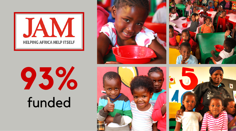 We’re excited to share that we’re only R2,405 away from reaching R37,050, which is the amount needed by Joint Aid Management (JAM) SA to set up a rainwater harvesting tank at the Phakamani Daycare Centre and Pre-school in Weilers Farm, in the south of Johannesburg. Thank you to those of you who’ve helped get JAM SA to their goal. If you’d like to help, click on the button below.