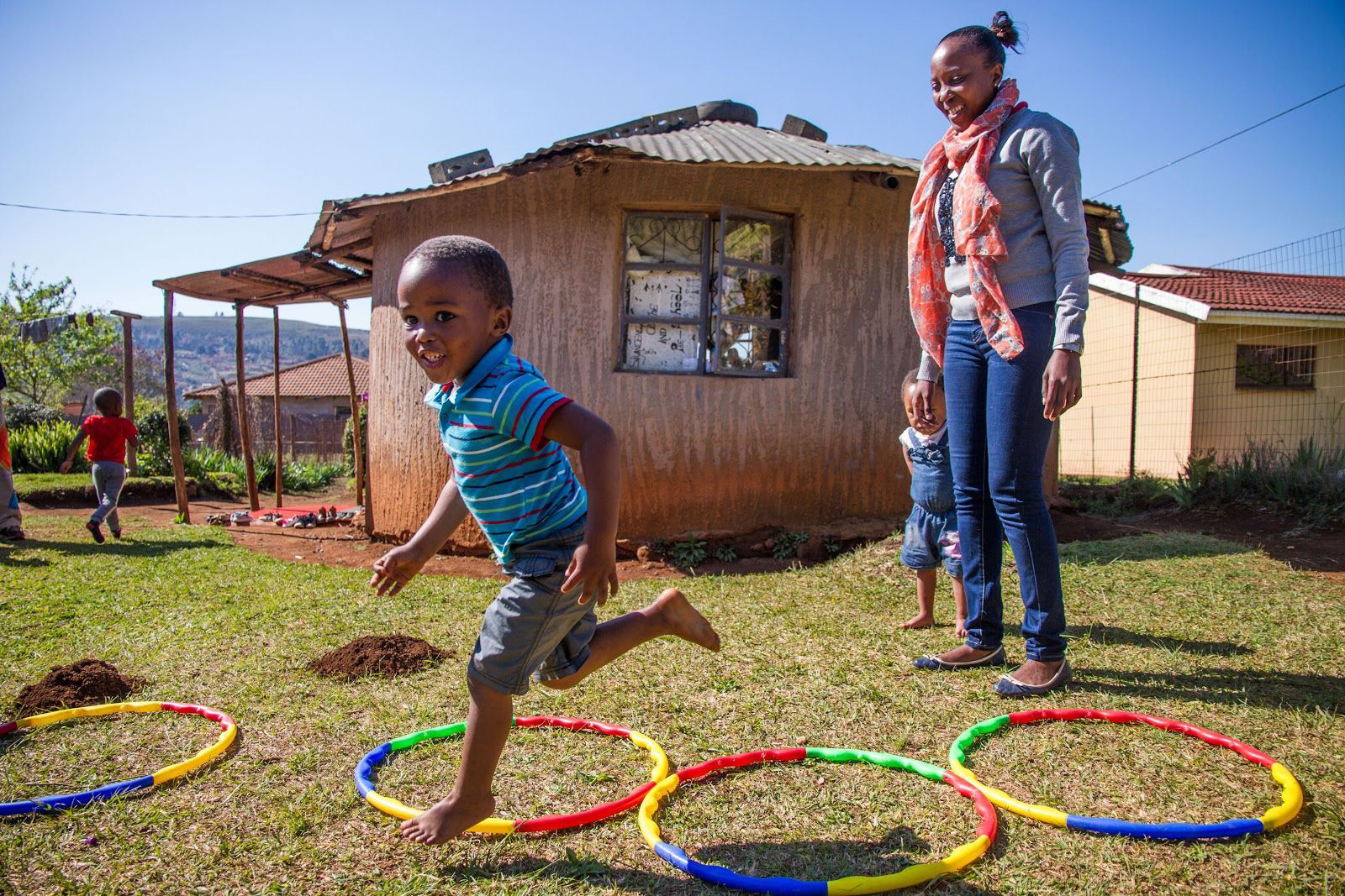 Visiting the Cotlands project required driving through the Hluhluwe Game Reserve and into the hills of Hlabisa. The remoteness of the area means that visiting some of the schools requires going where there are no paths. After a bumpy and meandering drive down a goat track, we arrived at a small house overlooking an unspoilt valley. After greeting the gogo (granny, in isiZulu) of the house, we walked down to the ‘school’ from which emanated the joyous sound of singing children. There in a small hut which served as the school, danced and sang a dozen children, directed by their teacher.