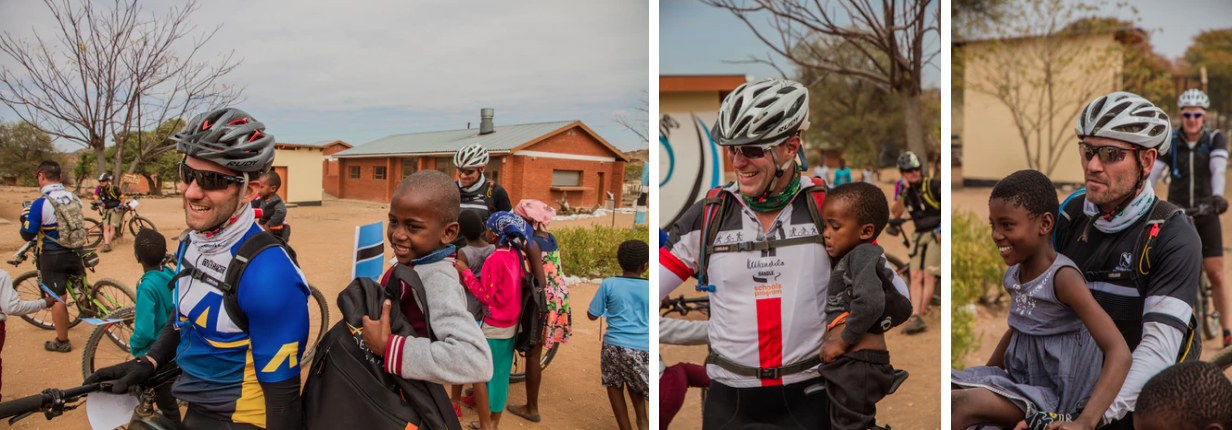 Half way through the ride we were treated to visiting a local school to deliver bags with stationary. The kids were awesome and got to ride with the cyclists. Children in the Wilderness helps many local schools, educating them on the environment and providing good mentorship and leadership training.
